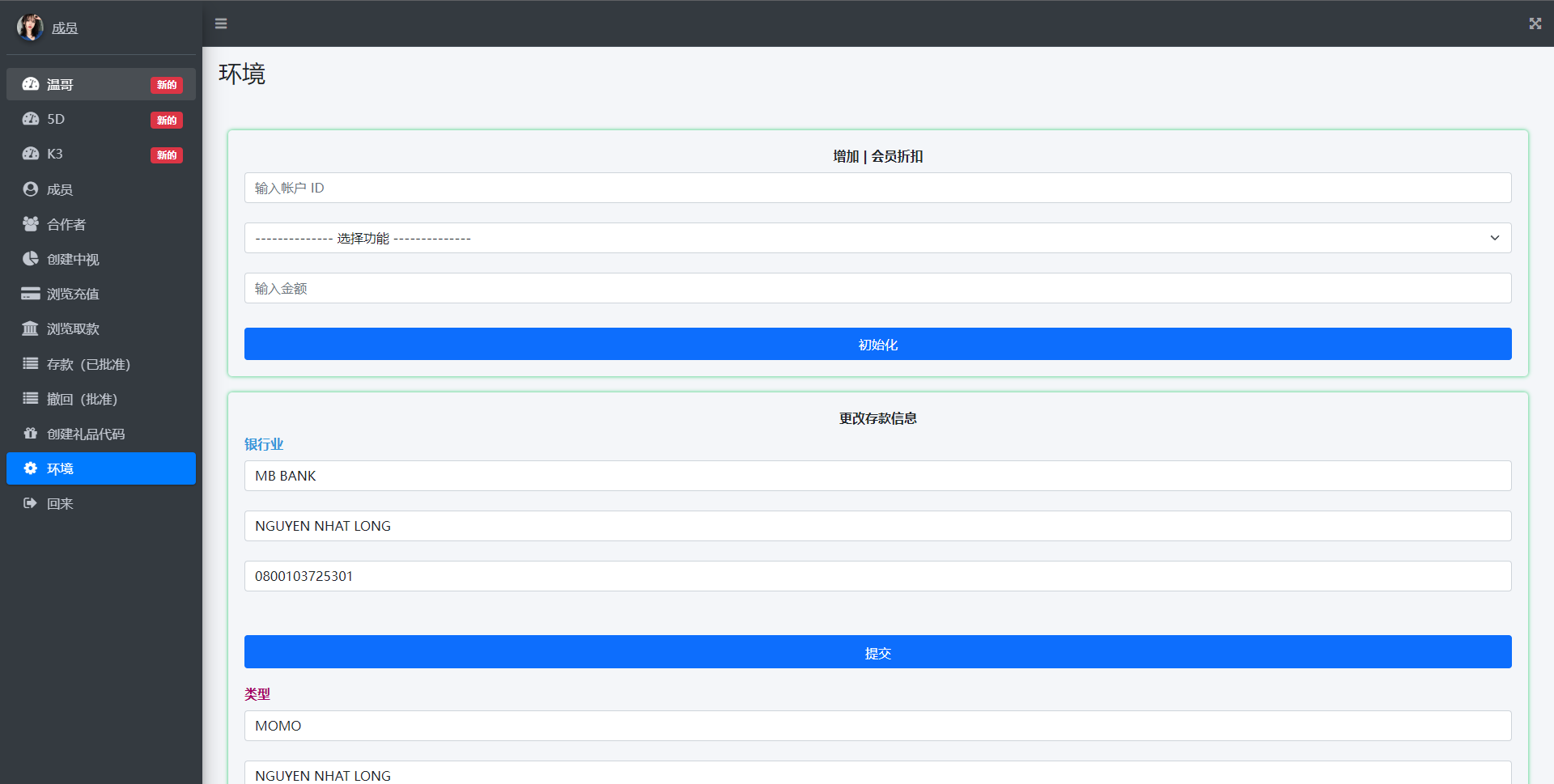 此系统是node js语言,前端开源方便二开,附带完整教程脚本 系统是针对越南本土开发的下注游戏带开奖控制,前后端均为越南语言 支持二开其他语言 源码带搭建教程 实测截图 3fcc335093cc04a 隐藏内容 本内容需权限查看 登录后购买 普通用户: 150USDTVIP会员: 150USDT永久会员: 免费 已有5人解锁查看