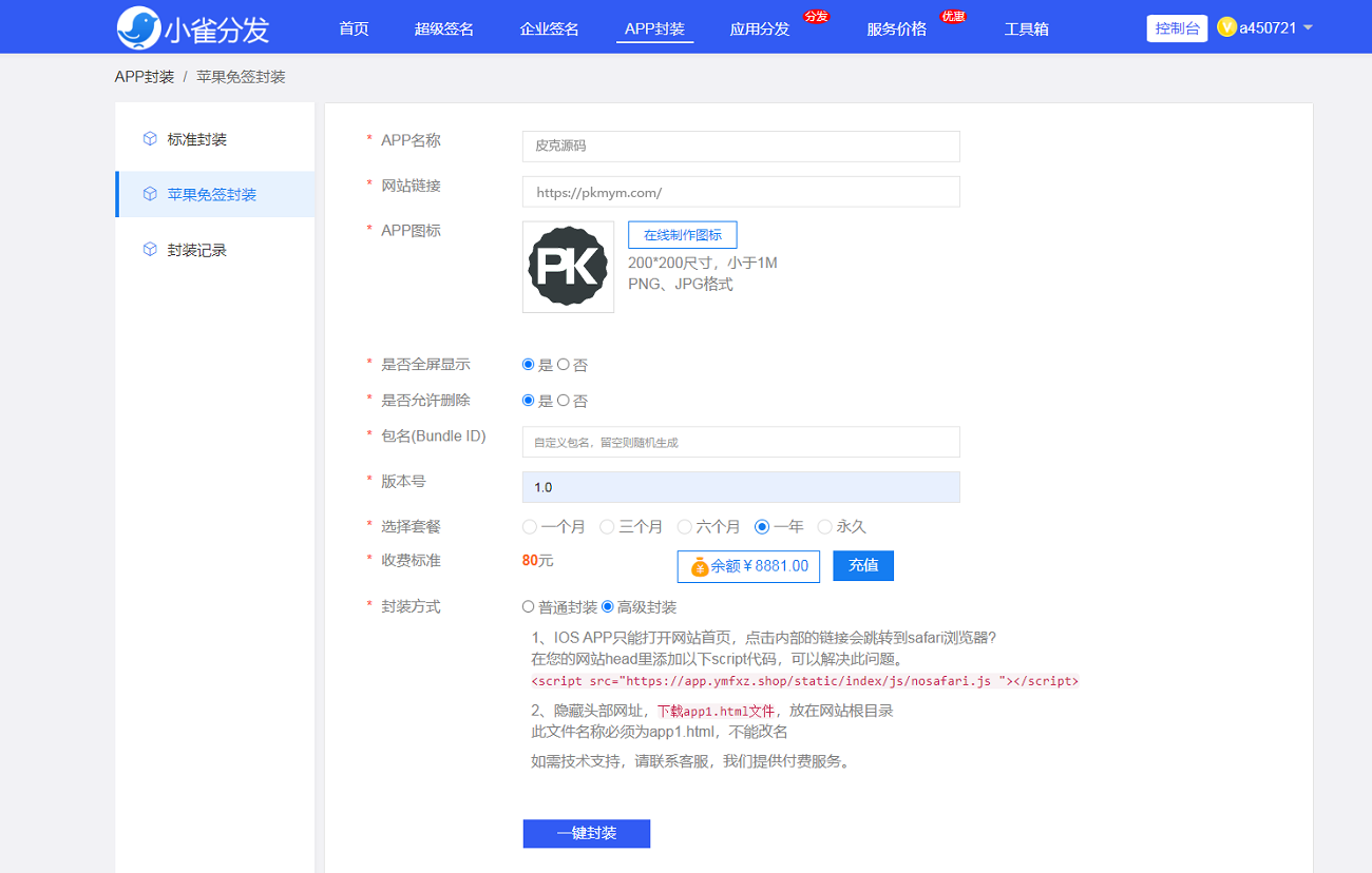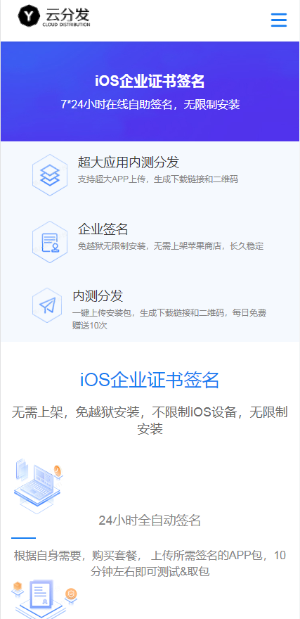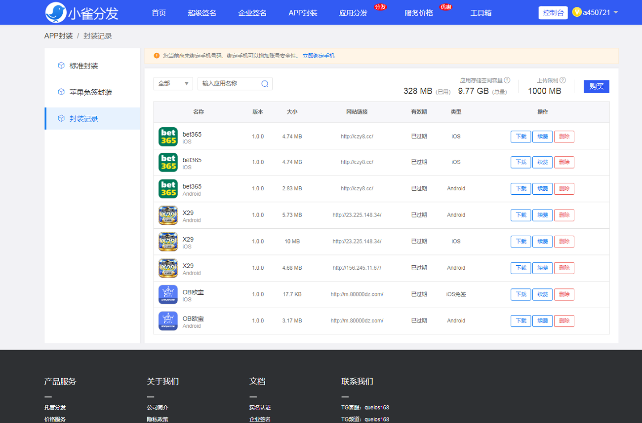 有苹果超级签名、FT签名、安卓/苹果APP封装打包、有苹果免签证书封装、APP分发下载,合适没有原生APP,但是有H5手机网页版的平台可以使用这个系统来打包生成APP