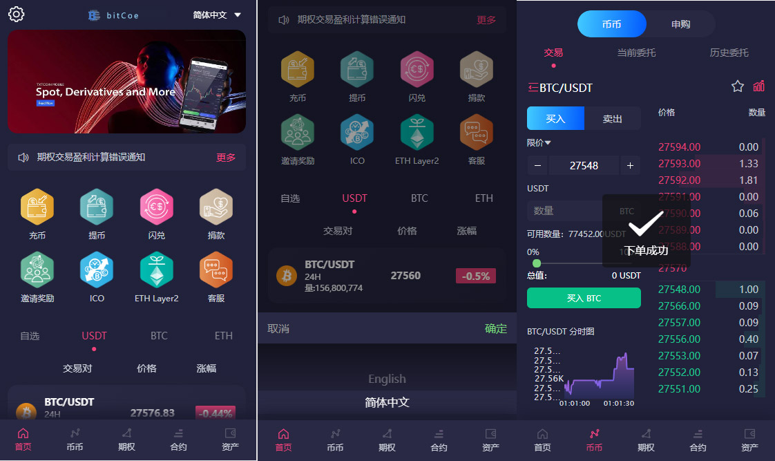 多国语言交易所源码,19种语言交易所系统源码,虚拟币交易平台,秒合约交易,永续合约,锁仓挖矿,附带搭建教程
