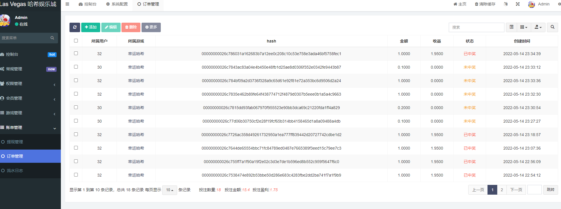 系统包含游戏:幸运哈希、哈希牛魔王、哈希双龙、庄闲合