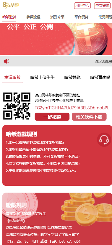 系统包含游戏:幸运哈希、哈希牛魔王、哈希双龙、庄闲合