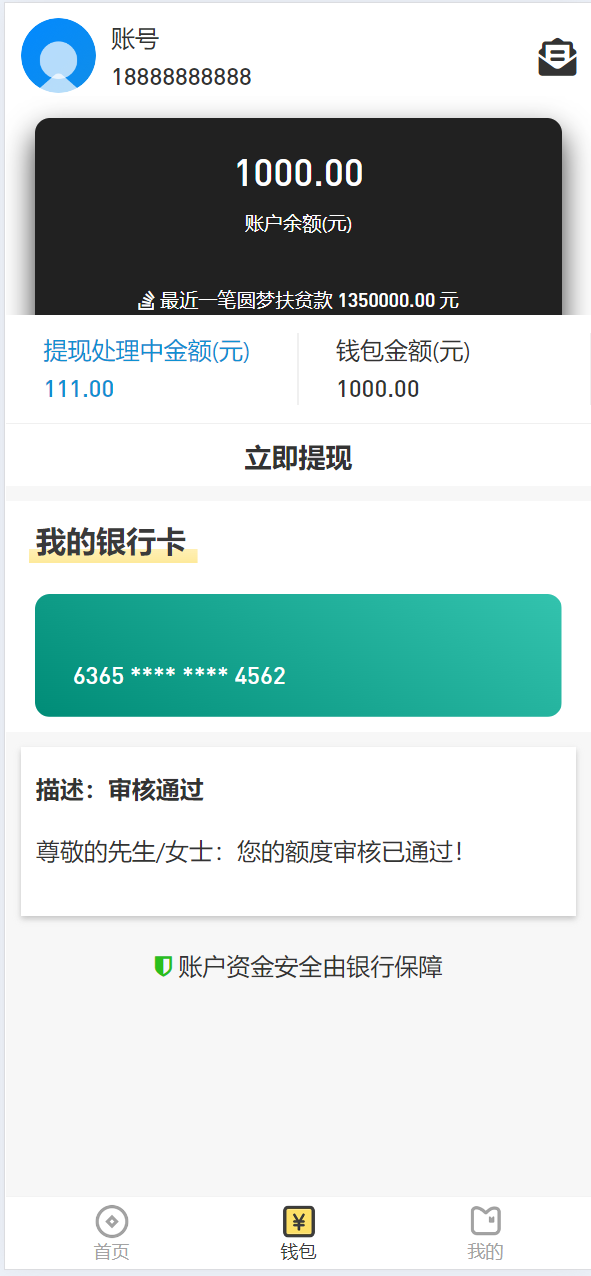 增加了前台客户不可再次修改提现银行卡号功能,只能后台修改提现银行卡。