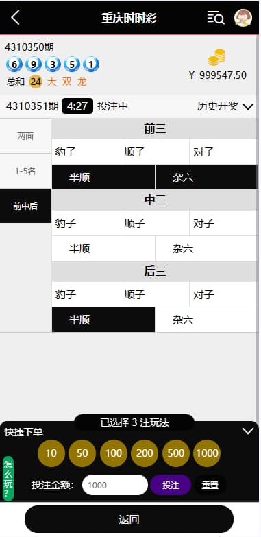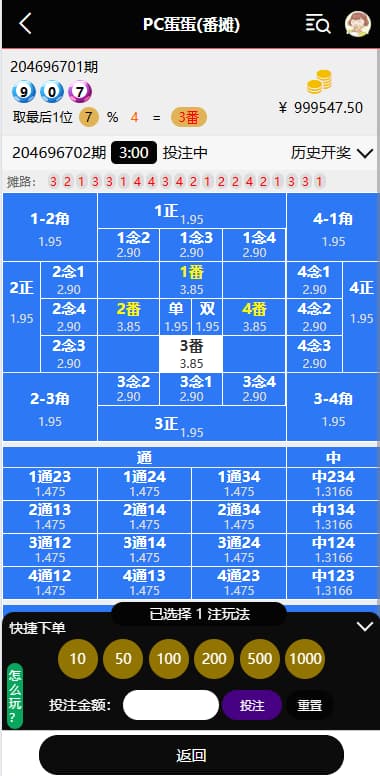 修复了PC蛋蛋番摊玩法计算逻辑出错问题