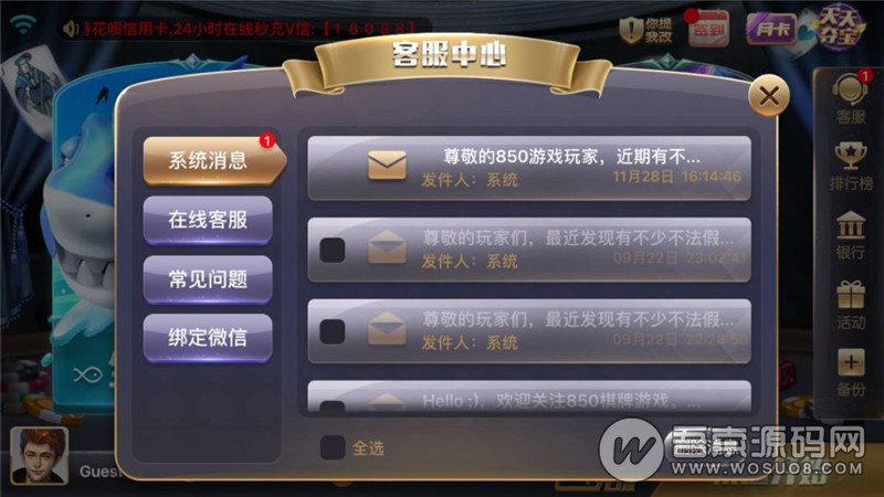 网狐荣耀850棋牌游戏源码提供一站式游戏开发解决方案,支持完整的数据库、网站、服务端和客户端,让您轻松搭建并运营一个专业的棋牌游戏平台。