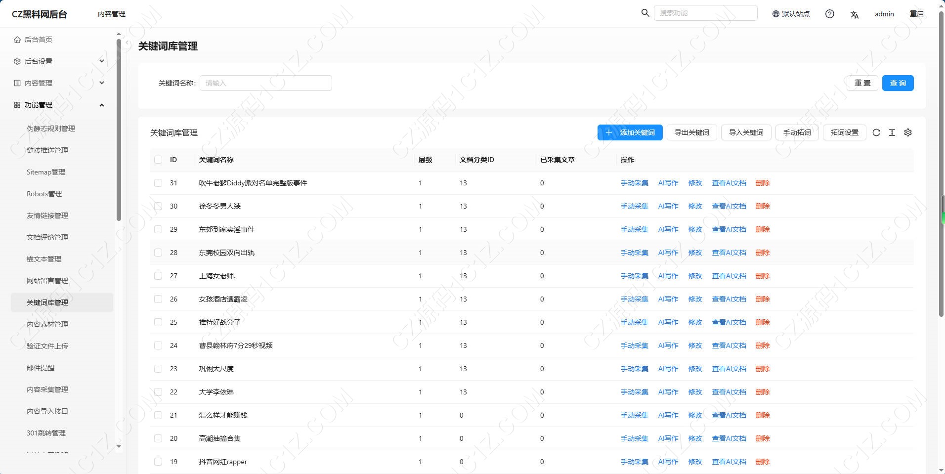 - 自动采集: 配有自动采集规则,能定期抓取网络热门事件,减轻运营负担。