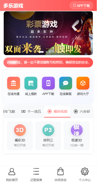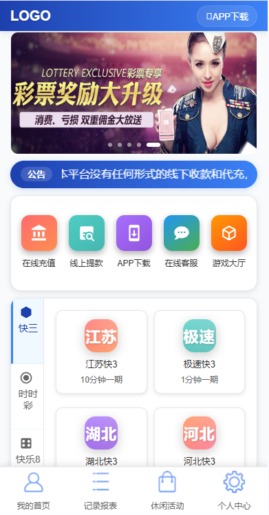 2. **双玩法支持**:支持传统彩票和即时开奖两种玩法,增加用户参与感。