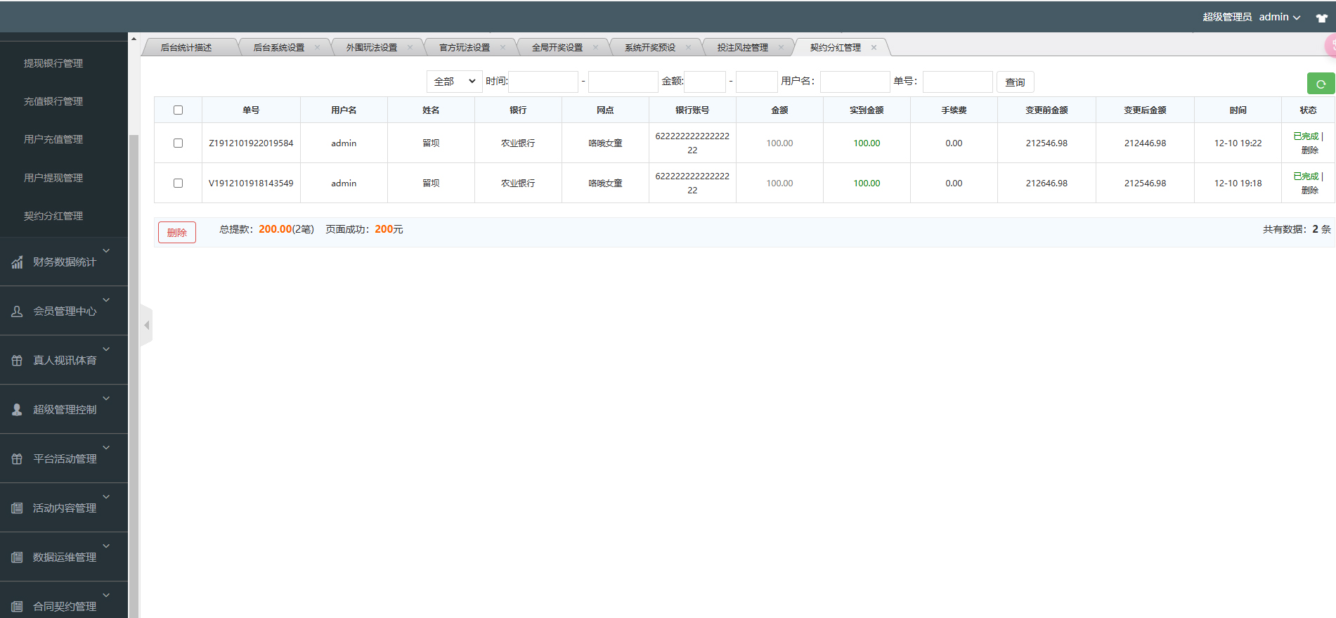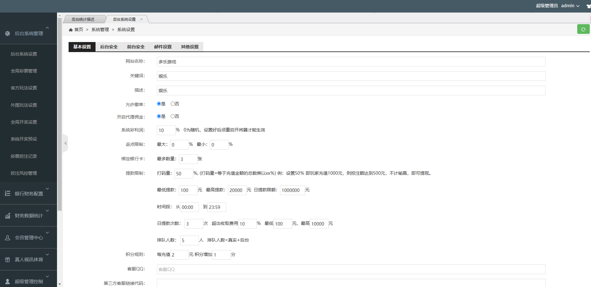 6. **后台可控**:管理员可通过后台灵活配置彩种、用户权限、分红比例等。