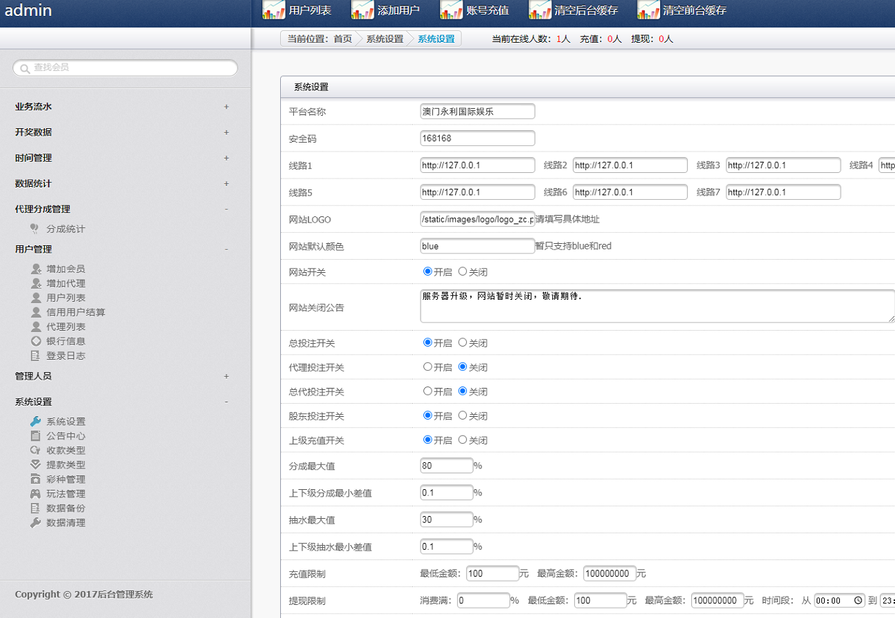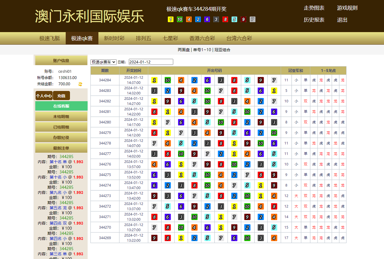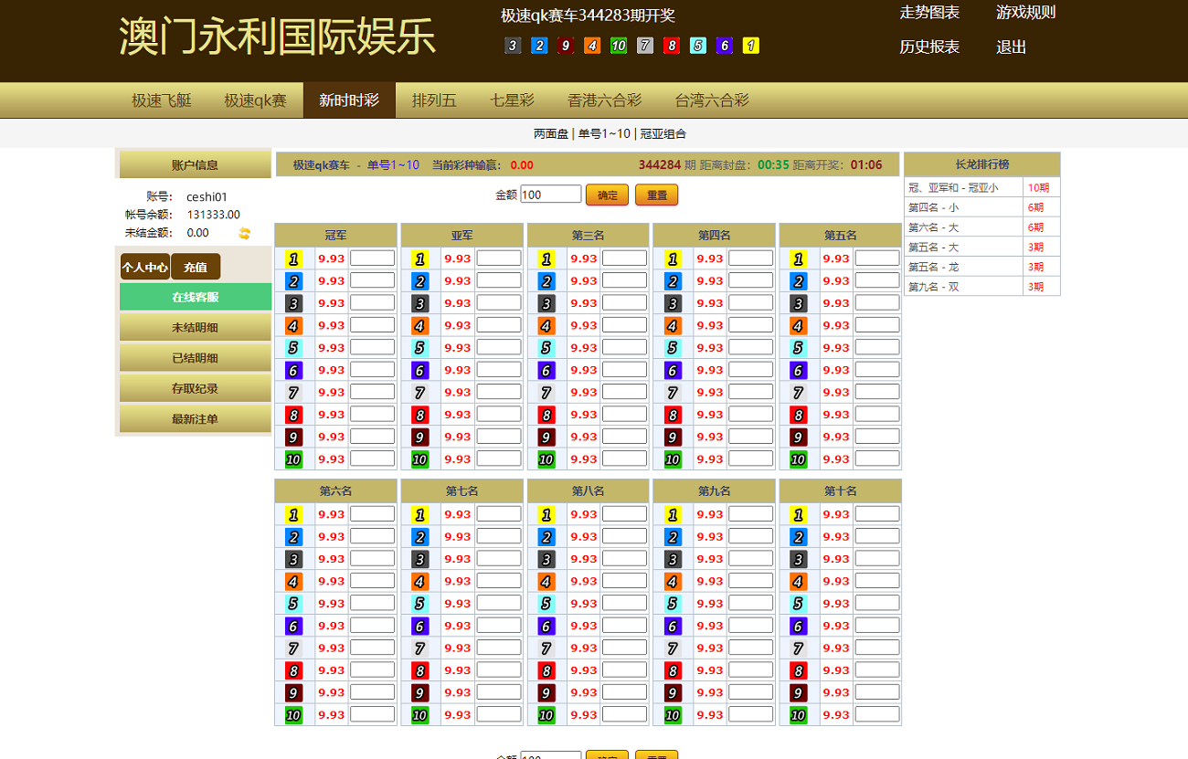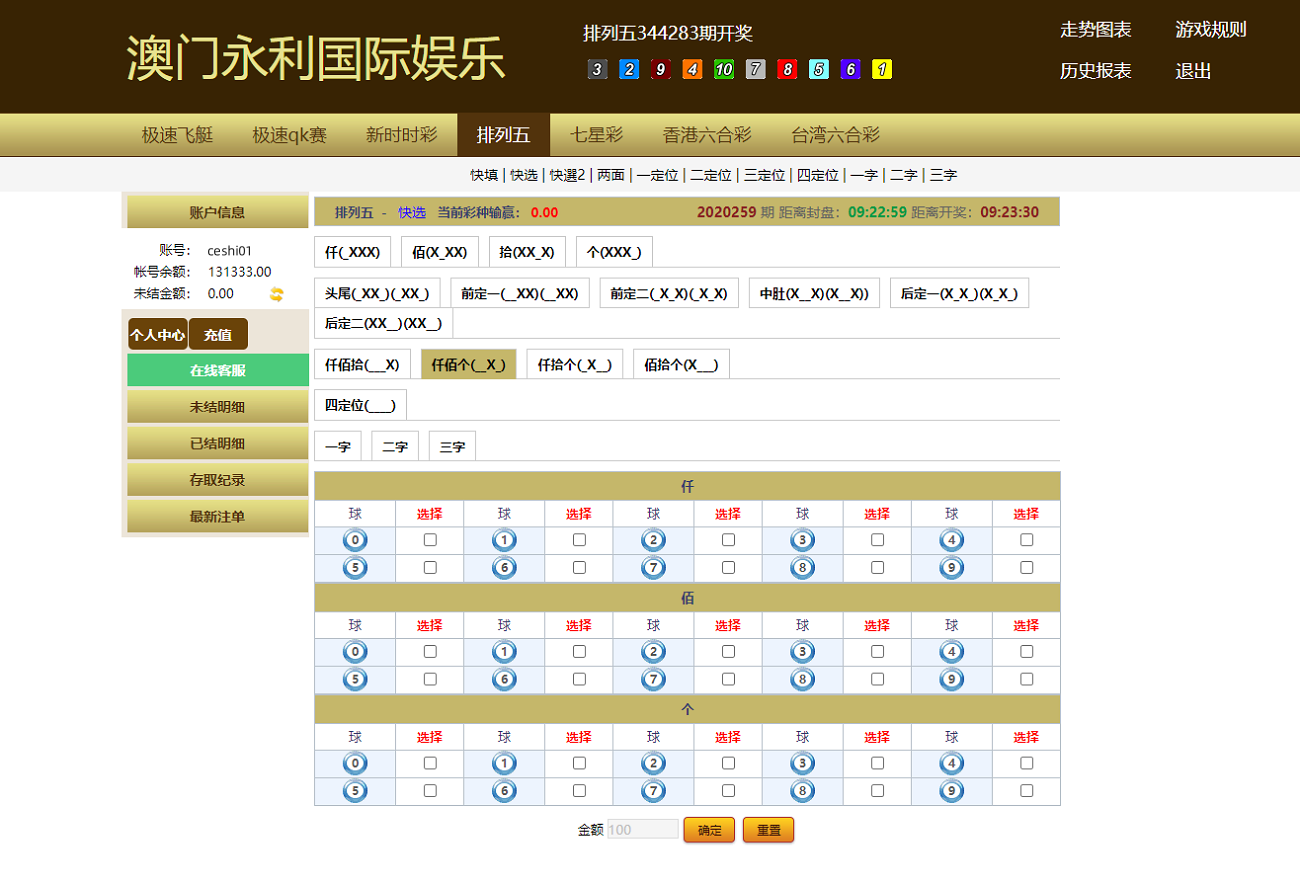 此套系统简约的前端UI,但是该有的功能还是有的,可以信用和现金盘两用,有七星彩、排列5、六合彩、赛车彩票,七星彩玩法一定二定等等